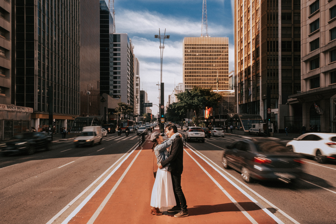 Tá aí um lugar mais urbano que já conheci em toda minha vida: a Avenida Paulista. Com muitos edifícios de arranha-céus empresariais, inúmeras faixas de pedestres, centenas de pessoas com vários estilos e etnias e muitos carros por toda sua extensão, a principal avenida de São Paulo ganha os corações dos noivos que são completamente urbanos e amam a cidade. Fazer um ensaio pré-wedding nesse ponto turístico.