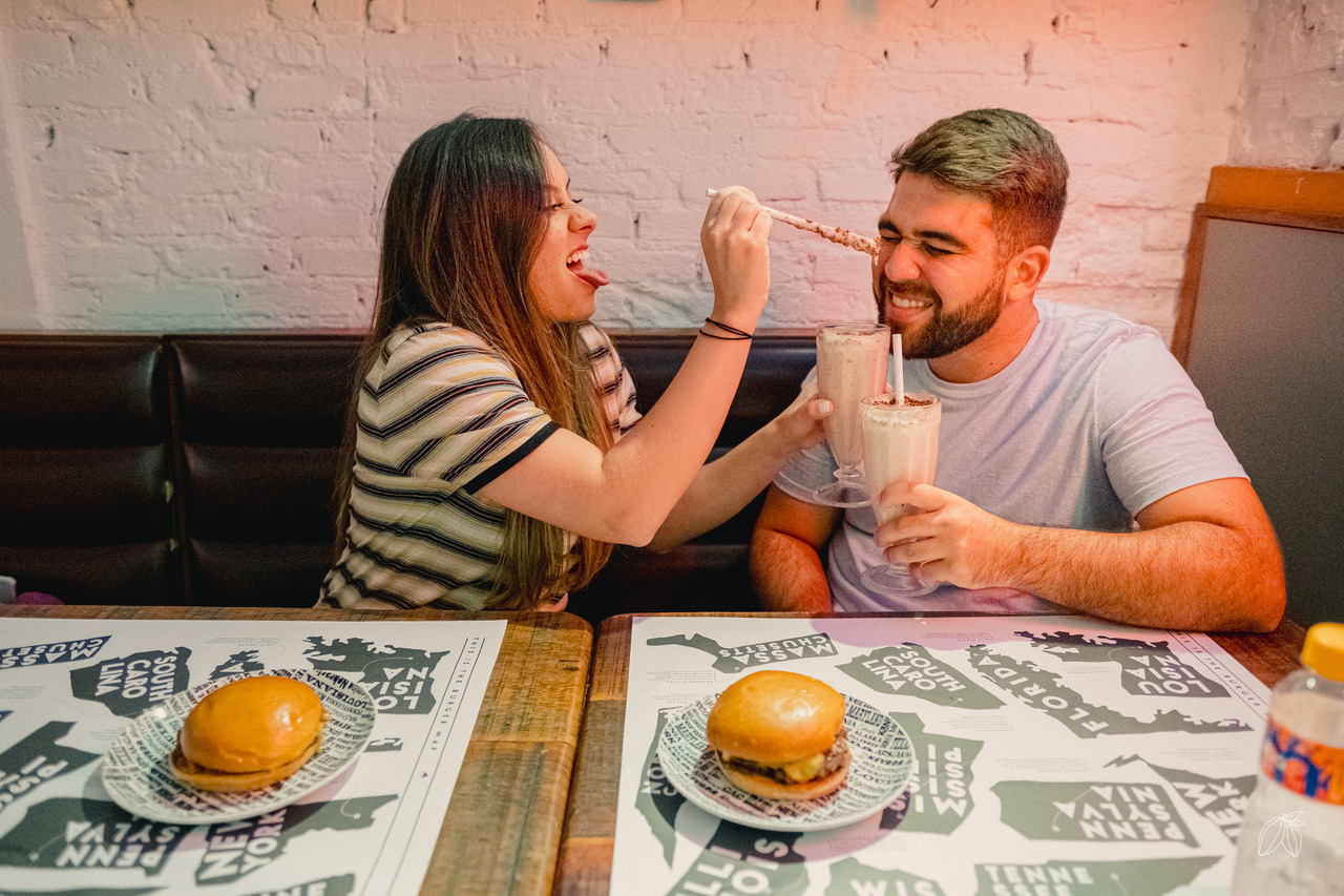 Um bom lanche é sempre bem vindo e existem casais que amam comer juntos. Como queremos que vocês casais tenha o gosto de vocês um bom pedido é realizar seu ensaio Pré Wedding em uma hamburgueria.